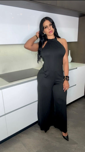 Realza tu elegancia con Jumpsuit Noir : un diseño halter sin espalda tan audaz como atemporal. Esta fluida silueta negra se ajusta en los lugares correctos, con un corte de pierna ancha y una espalda descubierta que impacta desde todos los ángulos. Ideal para cenas elegantes, noches en la azotea o escapadas de lujo.