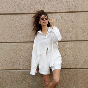 Fit & Style: Long-sleeve top paired with shorts, offering a chic and trendy silhouette for casual or streetwear outfits.