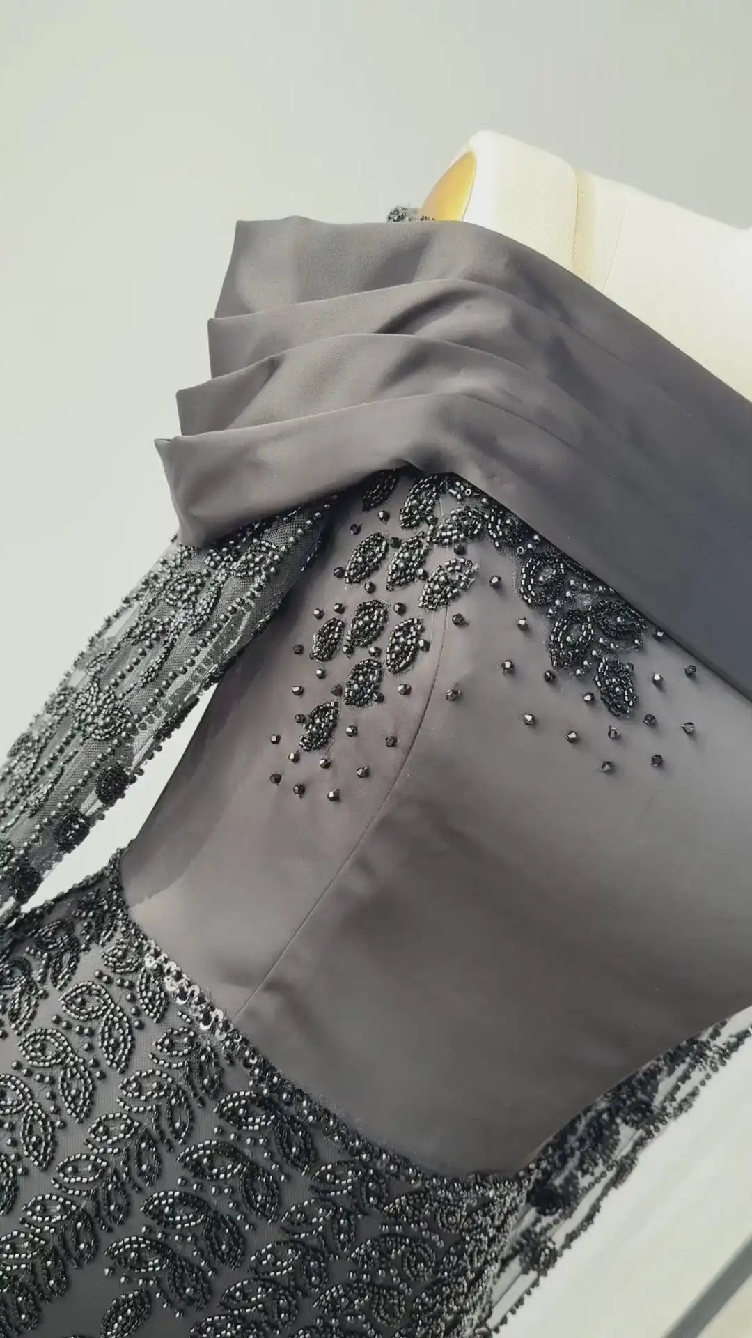 Product Beaded Black Long Sleeve Evening - https://sunmoonboutique.com/products/beaded-black-long-sleeve-evening