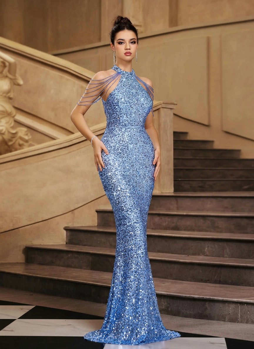 Product Beaded Sleeves Cocktail Evening Gown - https://sunmoonboutique.com/products/beaded-sleeves-cocktail-evening-gown