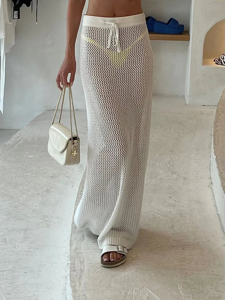 Product Elegant Hollow Out Knitted Maxi Skirt - https://sunmoonboutique.com/products/elegant-hollow-out-knitted-maxi-skirt