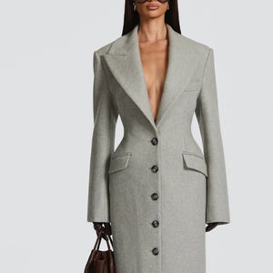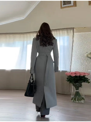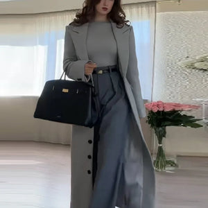 Product Elegant Woolen Lapel Long Coat - https://sunmoonboutique.com/products/elegant-woolen-lapel-long-coat