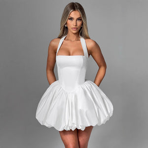White Lace-up Bow Dress