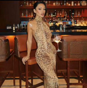 Product Leopard Print Hollow Plait Halter Dress - https://sunmoonboutique.com/products/leopard-print-hollow-plait-halter-dress