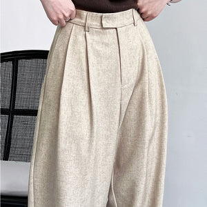 Design & Fit: High-waist, wide-leg trousers featuring stylish folds for a chic, elegant look.