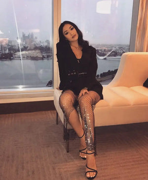 Product Rhinestone Mesh Elastic Tight Pants - https://sunmoonboutique.com/products/rhinestone-mesh-elastic-tight-pants