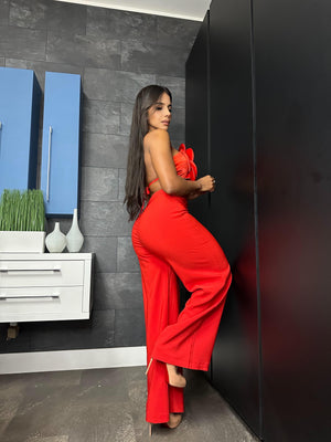 Command attention in this striking red two-piece set β a bold celebration of confidence, elegance, and sensuality. The statement rose top adds couture-level flair, while the tailored wide-leg pants elongate your silhouette with effortless grace. Perfect for romantic evenings, exclusive events, or anytime you want to feel unapologetically powerful.