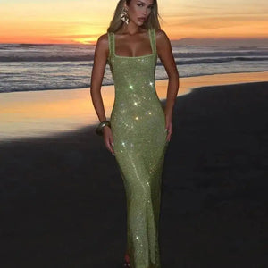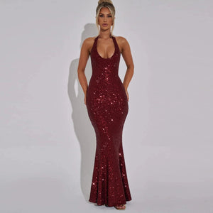 Shine all night in this Sequined Mesh Backless Maxi Dress, designed for bold elegance and effortless glamour. The straight silhouette with an empire waistline flatters your figure, while the sequined detailing and slightly stretchy mesh fabric provide comfort and sparkle with every move. Perfect for formal events, galas, evening parties, or special occasions where you want to make a statement.