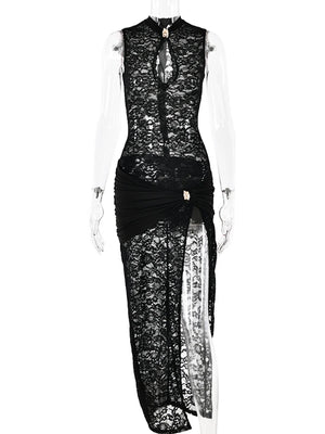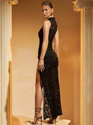 Product Sexy Black Lace Slit Evening Dress - https://sunmoonboutique.com/products/sexy-black-lace-slit-evening-dress