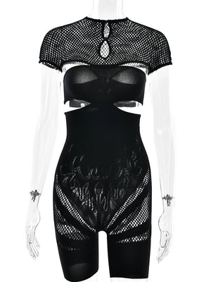 Product Sexy Hollow Out Sheer Romper - https://sunmoonboutique.com/products/sexy-hollow-out-sheer-romper