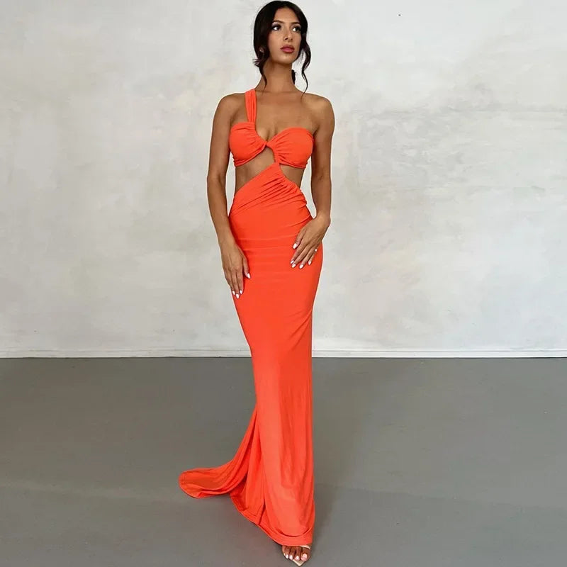 Halter Neckline: Stylish halter design that highlights the shoulders and neckline.