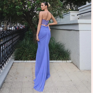 Strapless Lace-Up Back: Elegant strapless design with a lace-up back for adjustable fit and added sophistication.