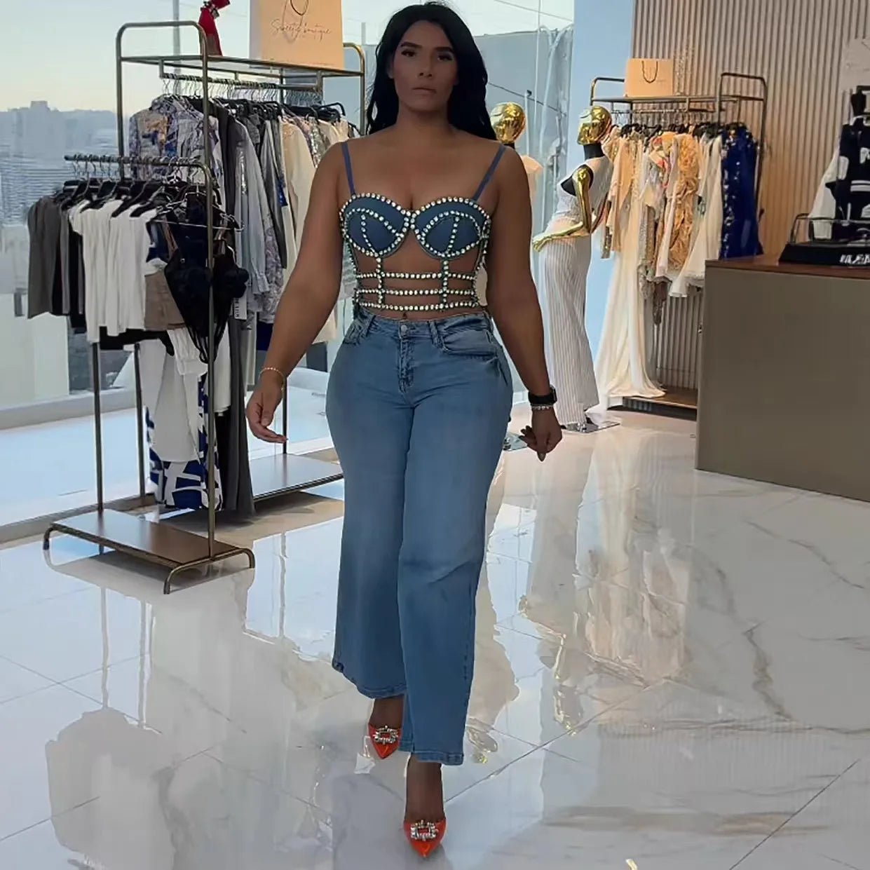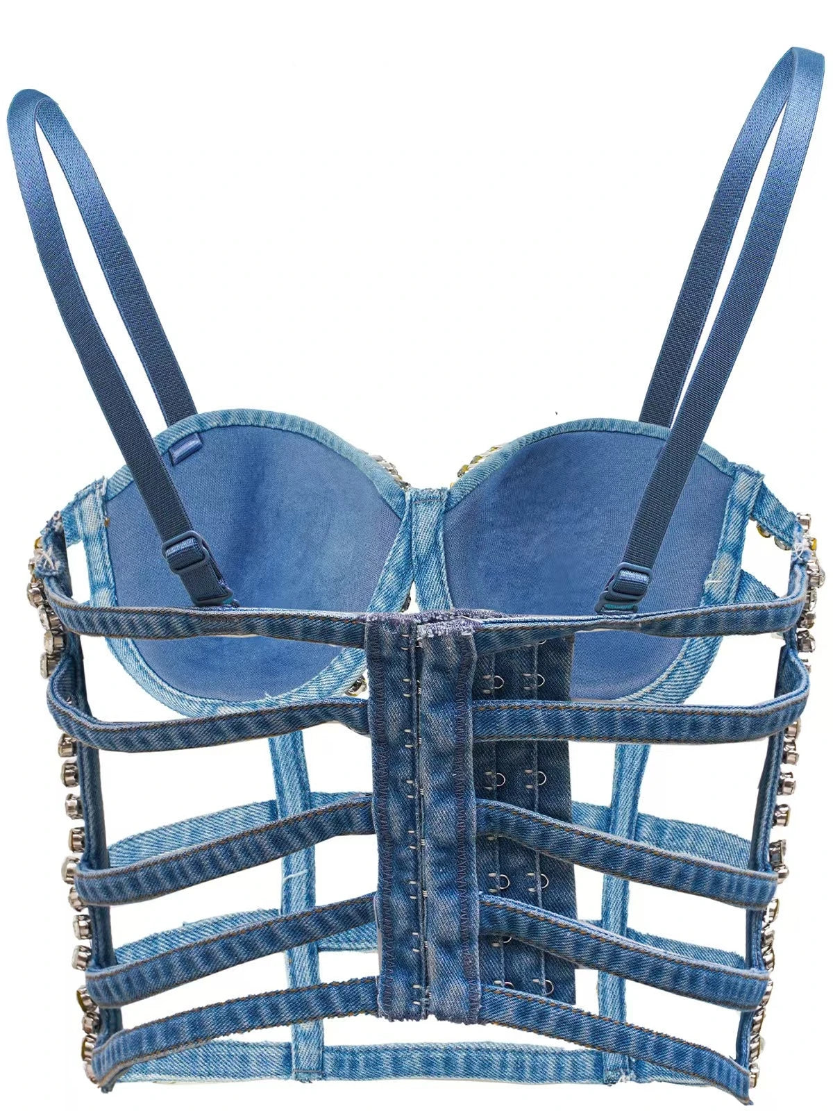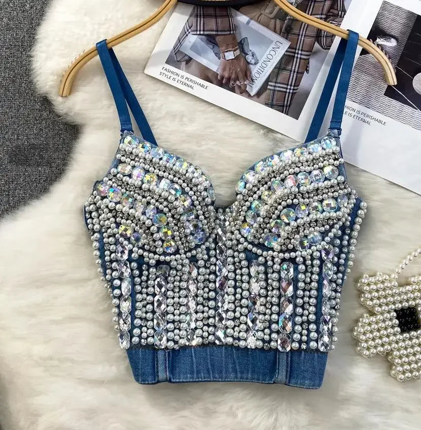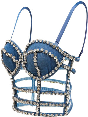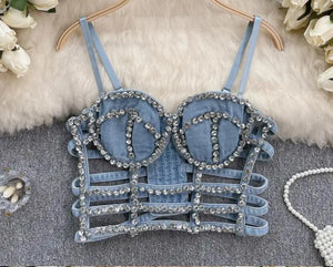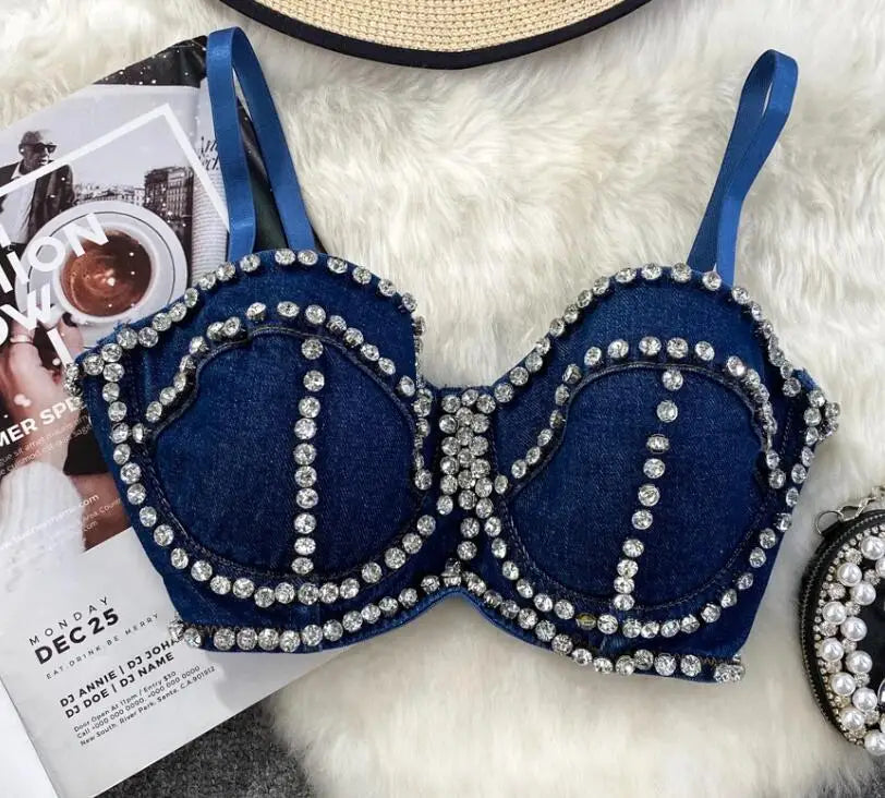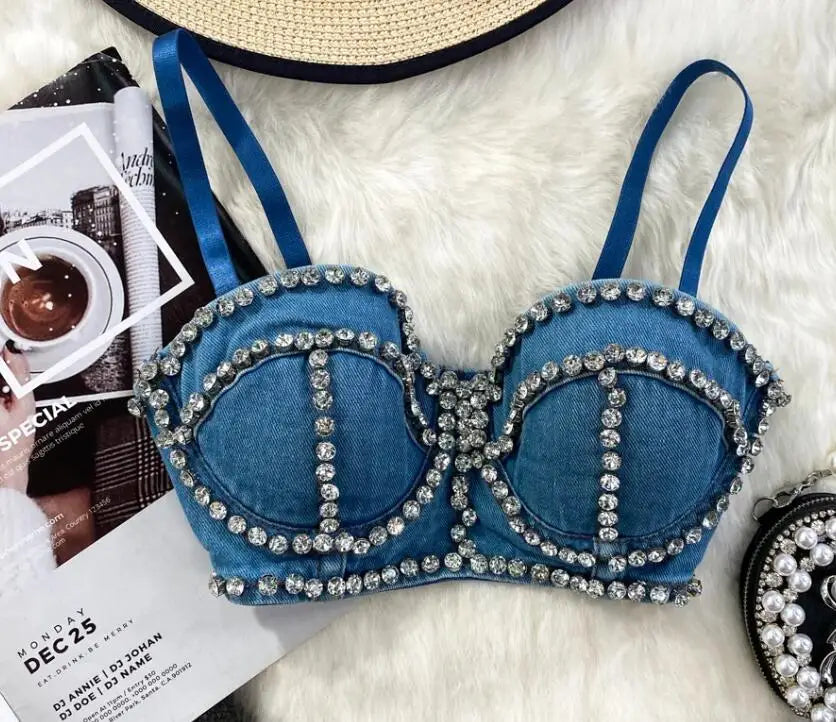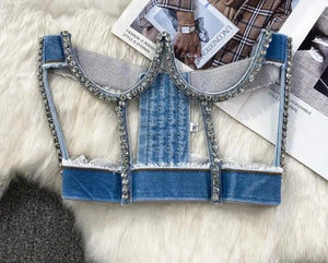 Product Streetwear Diamonds Denim Top - https://sunmoonboutique.com/products/streetwear-diamonds-denim-top