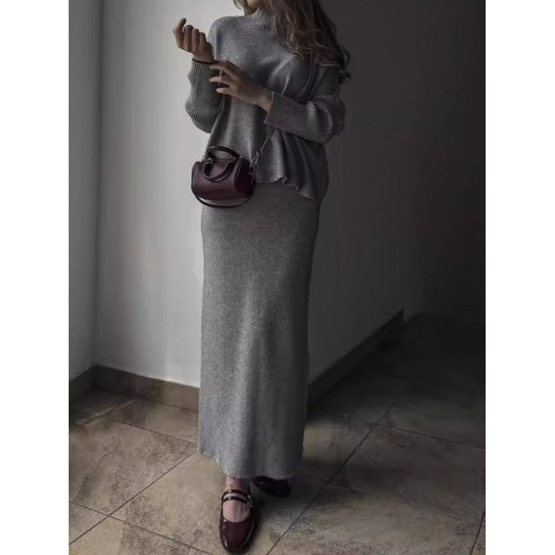 e Long Pullover Two-piece Overskirt Suit