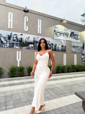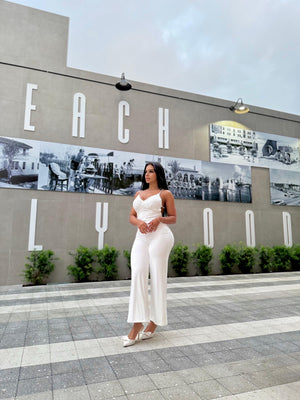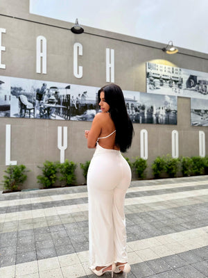 Elevate your evening style with the ‘Ivory Chic’ jumpsuit – featuring a figure-hugging silhouette, soft open back, and flared pants that move with grace. A touch of sophistication for classy nights.