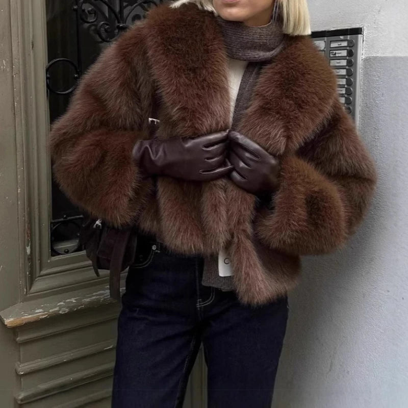Vintage Style Faux Fox Fur Short Coat