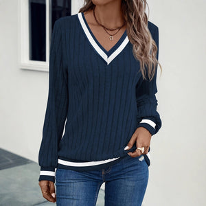 V-Neck Ribbed Sweatshirt