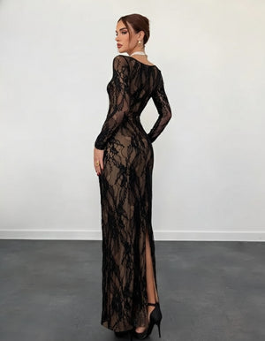 Product Women's Elegant Lace Trim Long Dress - https://sunmoonboutique.com/products/womens-elegant-lace-trim-long-dress